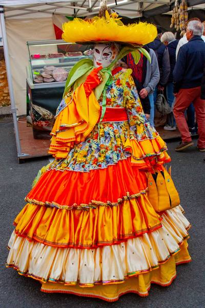 Des silhouettes masquées déambulent lentement dans les rues et sur la place Verdun au milieu du marché gourmand italien installé pour la circonstance.